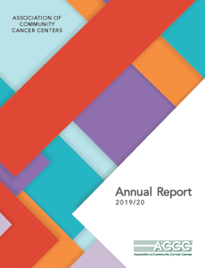 Learn about the work of the Association of Cancer Care Centers in our Annual Reports, which highlights the strategic initiatives and accomplishments during the previous twelve months, in addition to a snapshot of ACCC’s financial position. The Annual Report is presented each March at House of Delegates Meeting at the Annual Meeting & Cancer Center Business Summit in Washington, D.C.