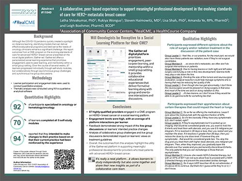 [Abstract 11040] A collaborative, peer-based experience to support meaningful professional development in the evolving standards of care for HER2+ metastatic breast cancer