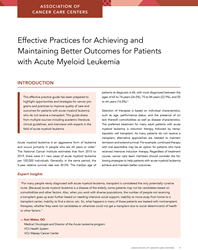 For many patients with acute myeloid leukemia who do not receive a transplant due to a constellation of factors, including social determinants of health and age-related comorbidities, alternative approaches are key to maintaining remission and extending survival. Access comprehensive, expert-driven, actionable recommendations in ACCC’s Practice Guide, Effective Practices for Achieving and Maintaining Better Outcomes for Patients with Acute Myeloid Leukemia, which details strategies to support care coordination as well as patient and caregiver engagement for this population and offers a wealth of helpful resources.