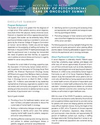 To help its membership address access and delivery of psychosocial services, on March 8, 2023 ACCC hosted a multistakeholder summit in partnership with The American Psychosocial Oncology Society (APOS) and The Association of Oncology Social Work (AOSW) focused on psychosocial care delivery in oncology to: