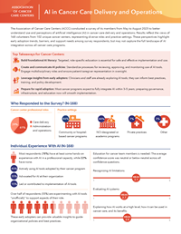 Assess current use, perceptions, and readiness for AI in cancer care based on a 2025 ACCC member survey of 168 professionals from 102 cancer centers, highlighting early adoption trends, implementation challenges, and priority support needs.