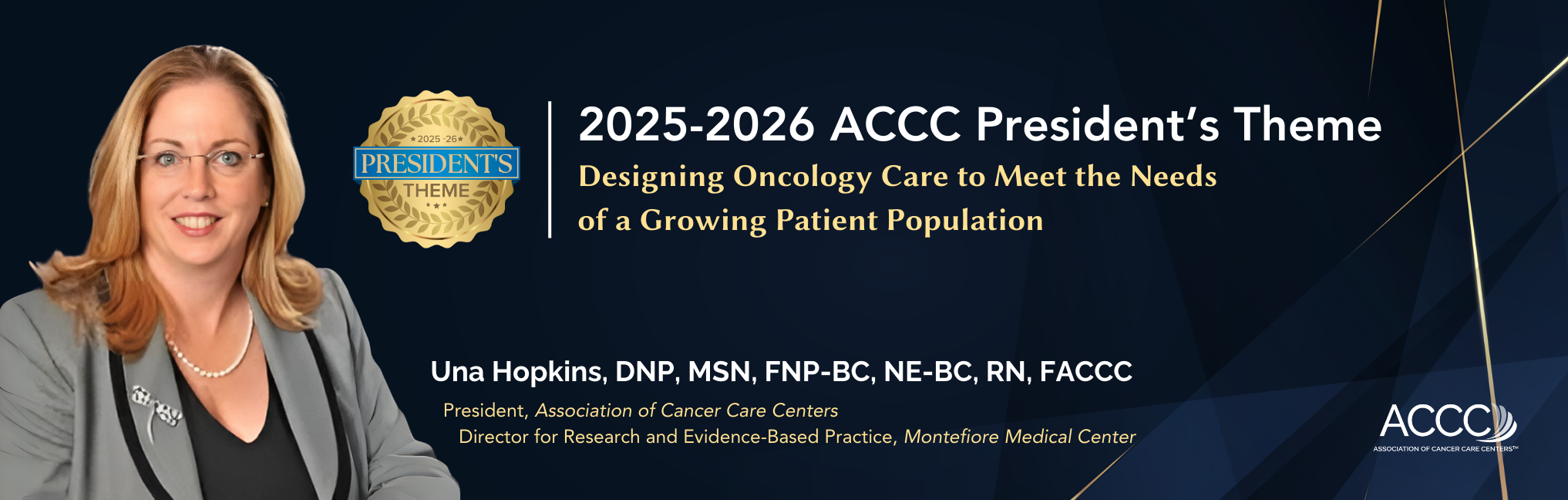 The 2025-2026 ACCC President’s Theme will focus on 4 key focus areas: Workforce Empowerment and Enablement, Capacity Building at Scale, Technology as a Workforce Multiplier, and Optimized Oncology Service Line Structures.