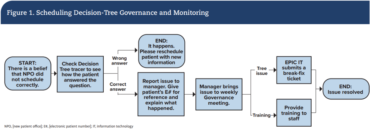 A governance structure with clinical informatics was established to support the above workstreams. Decision tree audits with providers and navigation were conducted on a defined cadence to prevent triage errors and ensure scheduling algorithms reflect current pathways (Figure 1).
