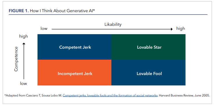 Despite the uncertainties surrounding AI, Westhoff offered a pragmatic take, emphasizing that the technology is on an upward trajectory: “AI will never be worse than it is now—it will only get better.” He cautioned against treating AI as an oracle, suggesting instead that it functions more like a sycophantic intern—eager, fast, and occasionally helpful, and occasionally wrong in ways that are easy for an attending physician to spot. To illustrate the role of interpersonal trust in decision-making, Westhoff referenced a conceptual framework from a 2005 Harvard Business Review article (Figure 1), which maps likability against competence. While the chart wasn’t originally designed with AI in mind, he used it to draw a parallel: generative AI in its current form resembles the “lovable fool”—well-meaning, not always correct, but nonthreatening and often useful. He noted that in many settings, including medicine, people in fact seek out a lovable fool over a “competent jerk,” who may be technically correct but unpleasant to interact with.