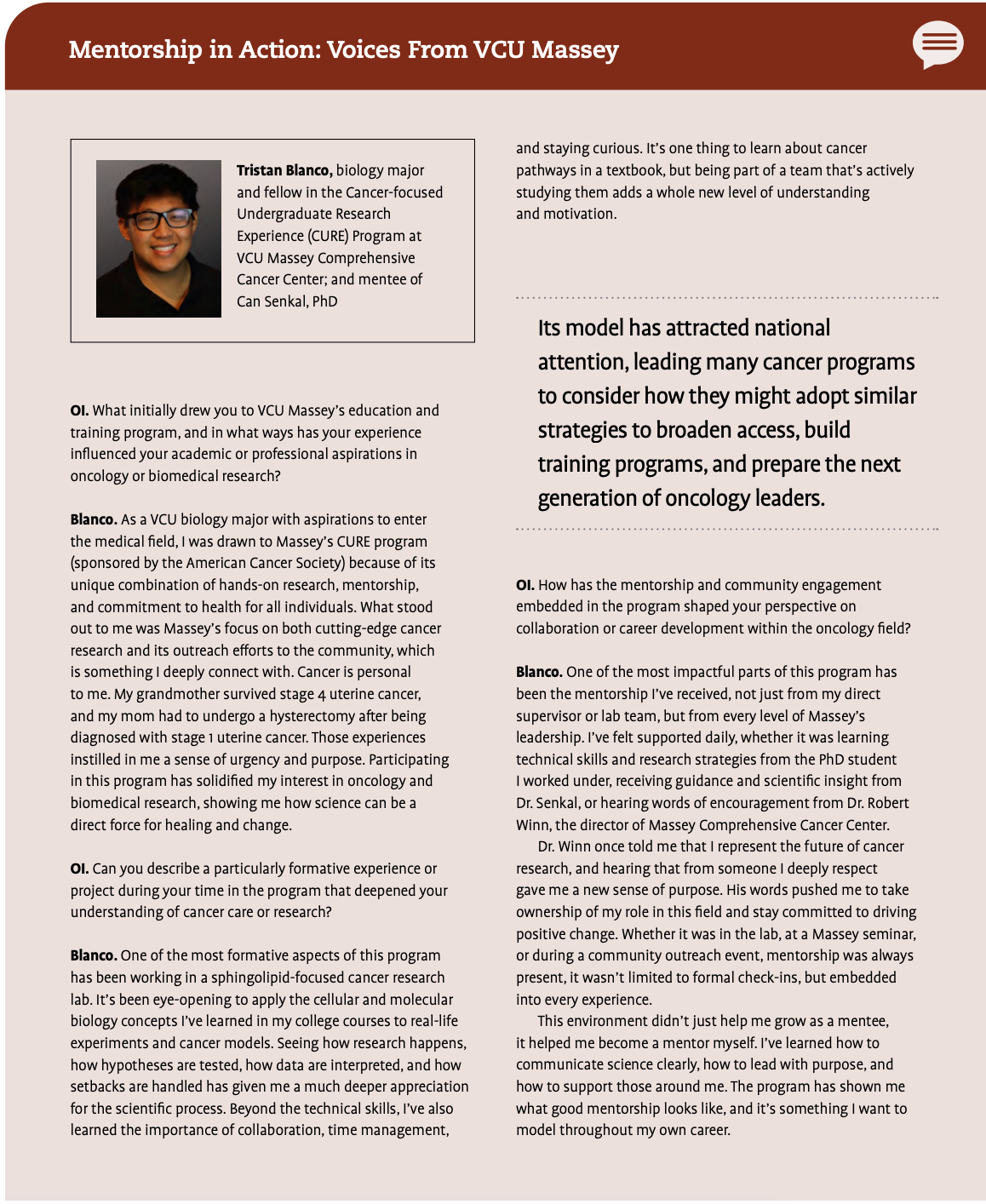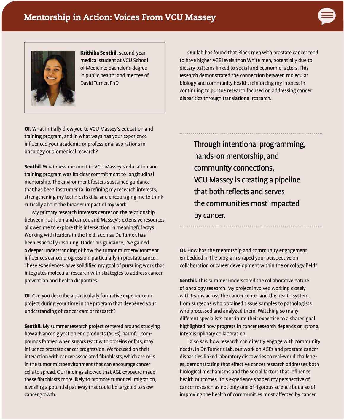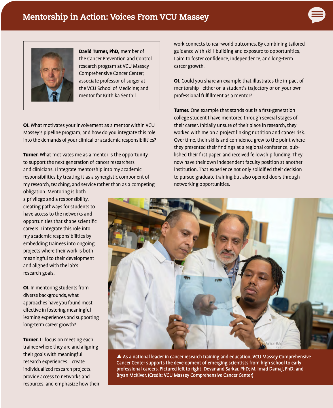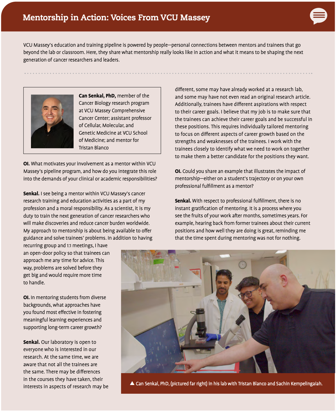 For a deeper look at how mentorship shapes both mentors and students at VCU Massey, see the sidebar featuring a Q&A with Drs. Senkal and Turner and the trainees they guide.