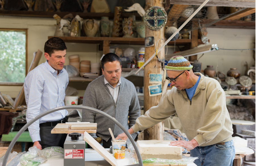 Leadership from Columbia Memorial Hospital, including Chris Laman, now vice president of strategy, and Randy McClelland, retired project director for the BuildCMH Expansion Project, worked alongside local artist, Richard Rowland, as he created the ceramic mural of a Planetree for the exterior of the CMH-OHSU Knight Cancer Collaborative.