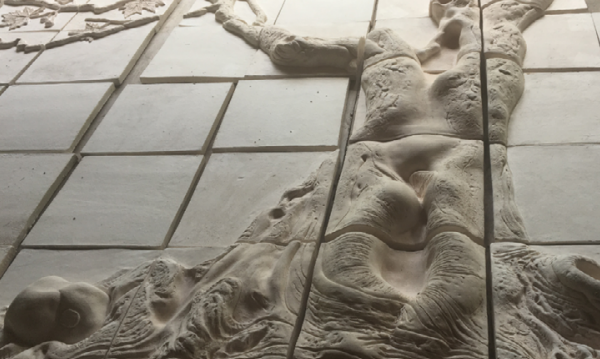 The unfinished molds of the ceramic mural by Richard Rowland sit awaiting firing before their completion. The mural was added to the outside of the CMH-OHSU Knight Cancer Collaborative building before its opening in 2017.