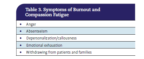 Oncologists and their teams may not even realize that they are entitled to grieve. When grief remains unprocessed, there is often nothing left for the next patient or family.13 Disenfranchised grief leads to compassion fatigue and all the symptoms of burnout, such as anger at work or at home, absenteeism, feelings of depersonalization (ie, lacking empathy toward patients or anger at patients), and emotional exhaustion (Table 3). Oncologists may find themselves making rounds at the hospital in the early morning hours, before the family arrives, to avoid the extra pain those encounters can cause.