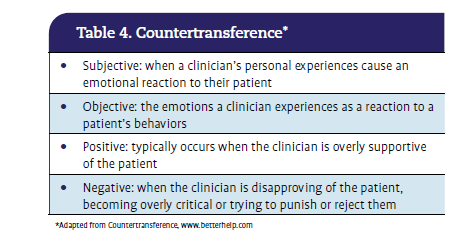 Countertransference is even more insidious. Countertransference is a psychological phenomenon in which clinicians unconsciously allow their personal feelings toward patients to dictate what those patients need (Table 4). Countertransference can be positive or negative. It is expected, normal, and will happen. It should not be a source of shame. It is the natural consequence of being a human caring for a human, and our medical knowledge does not mitigate countertransference. But if it goes unrecognized, countertransference can lead to both substandard care for the patient and burnout for the oncologist.