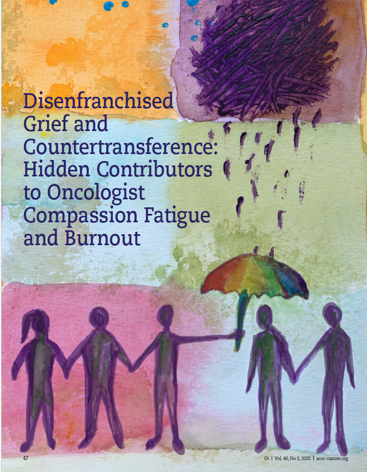 Disenfranchised grief, however, can occur when a person’s loss is not openly acknowledged, socially validated, or publicly mourned.17 Oncologists and their team members who knew and worked with a patient closely, often for years, are not expected to grieve openly.