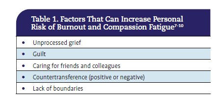 Mitigating factors for oncologists discussed elsewhere focus on recognizing the importance of physician well-being and providing support for the practice, administration, patient care, and staffing.1,3,4,5 Strategies to build resilience, inclusion, and visibility in an organization also improve fatigue and burnout and promote professional satisfaction.3-6 Yet, the important contributions of unprocessed grief and countertransference have received less attention in oncology literature, though they are well recognized as important in psychiatric and psychological practice and palliative care (Table 1).7-10