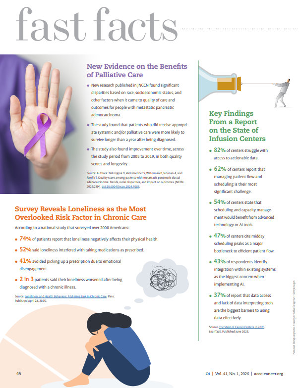 - New research published in JNCCN found significant disparities based on race, socioeconomic status, and other factors when it came to quality of care and outcomes for people with metastatic pancreatic adenocarcinoma.