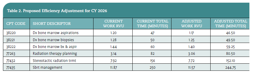 For CY 2026, CMS proposed that an efficiency adjustment be applied to physician work RVUs and intraservice time for all nonâtime-based services paid under the MPFS. CMS indicated the proposal is based on the âassumption that both the intraservice portion of physician time and the work intensity (including mental effort, technical effort, physical effort, and risk of patient complications) would decrease as the practitioner develops expertise in performing the specific service. As expertise develops, learning leads to enhanced familiarity with the various aspects of a service, variations in the anatomy of each patient, and confidence in the practitionerâs own ability to handle unexpected challenges that arise.â