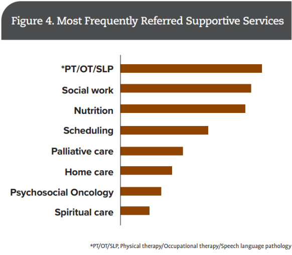 - Dedicated nurse navigator, social worker, and palliative care providers to facilitate goals of care discussions and to support patients with complex care needs and monitoring over the course of treatment.
