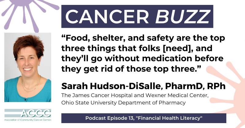 On this episode of CANCER BUZZ, we discuss the importance of financial health literacy for patients with cancer, how cancer team members can better help patients and caregivers avoid financial toxicity, and how financial navigation delivers value to both patients and cancer programs.