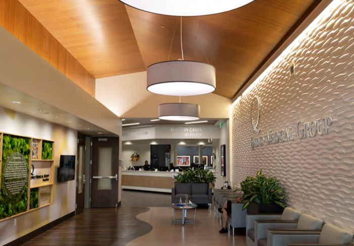 Quincy Medical Group Cancer Institute’s entryway and patient check-in area.