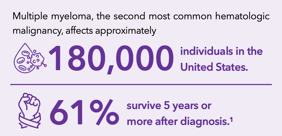 Multiple myeloma remains incurable, and most patients will inevitably relapse and cycle through multiple lines of therapy.² The treatment landscape of relapsed or refractory multiple myeloma is still evolving, and new treatments have been showing powerful efficacy in patients. However, as patients exhaust multiple lines of therapy with each relapse,2 different treatment options and regimens are sorely needed for this chronic and incurable disease.